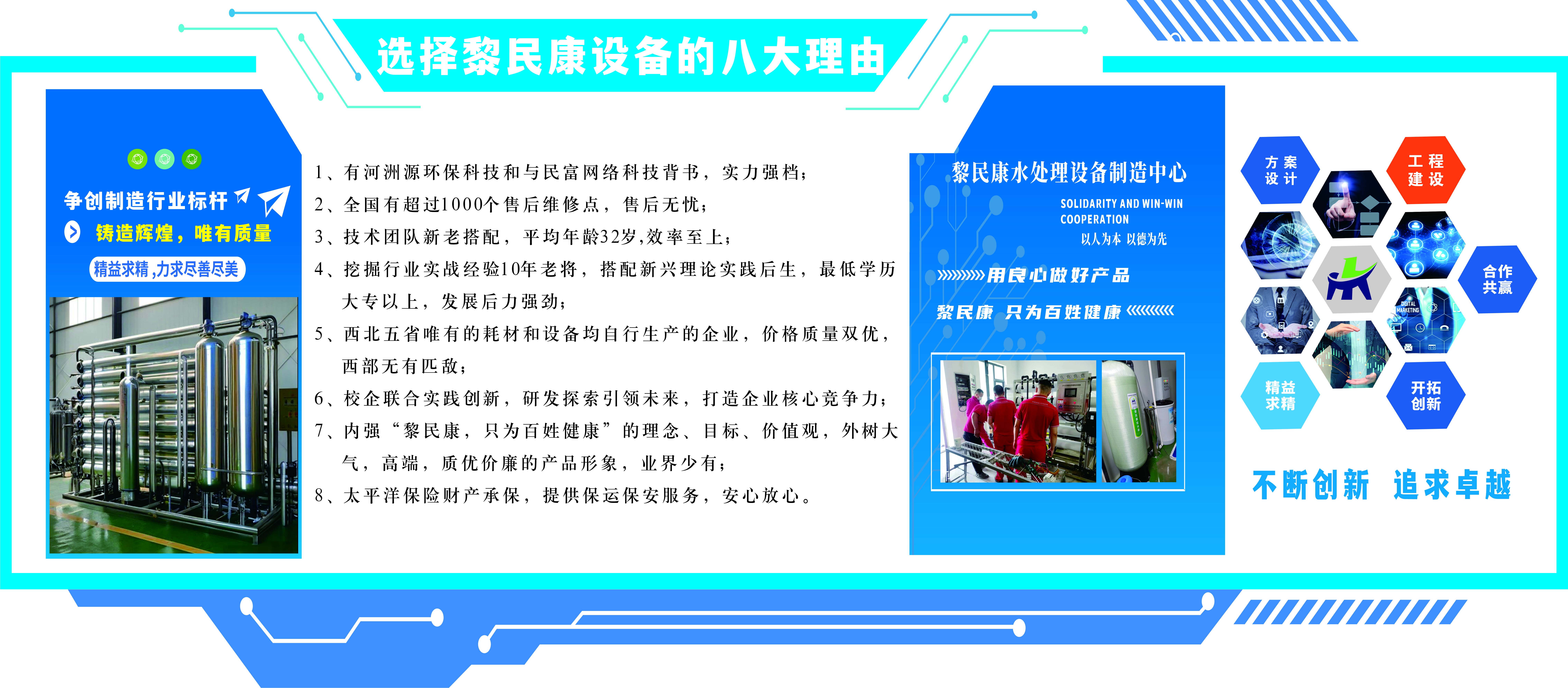 黎民康水處理設備公司,自成立之日起,邊樹立起:內(nèi)強“黎民康,只為百姓健康”的理念、目標、價值觀;外樹大氣,高端,質(zhì)優(yōu)價廉的產(chǎn)品形象,業(yè)界少有; ...